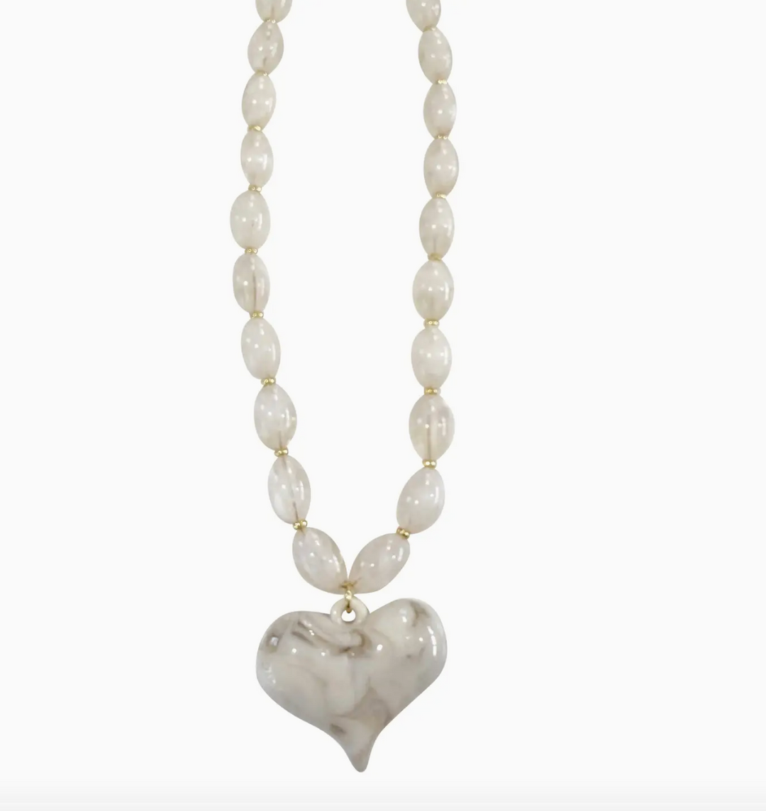Roxie Cream Beaded Necklace With Heart Charm