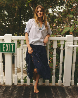 Light as air, the Sandra Top combines an easy drape with delicate trims, making it a refined yet relaxed essential. Thoughtfully designed with airy cotton and subtle embroidery, it brings effortless sophistication to warm weather styling.