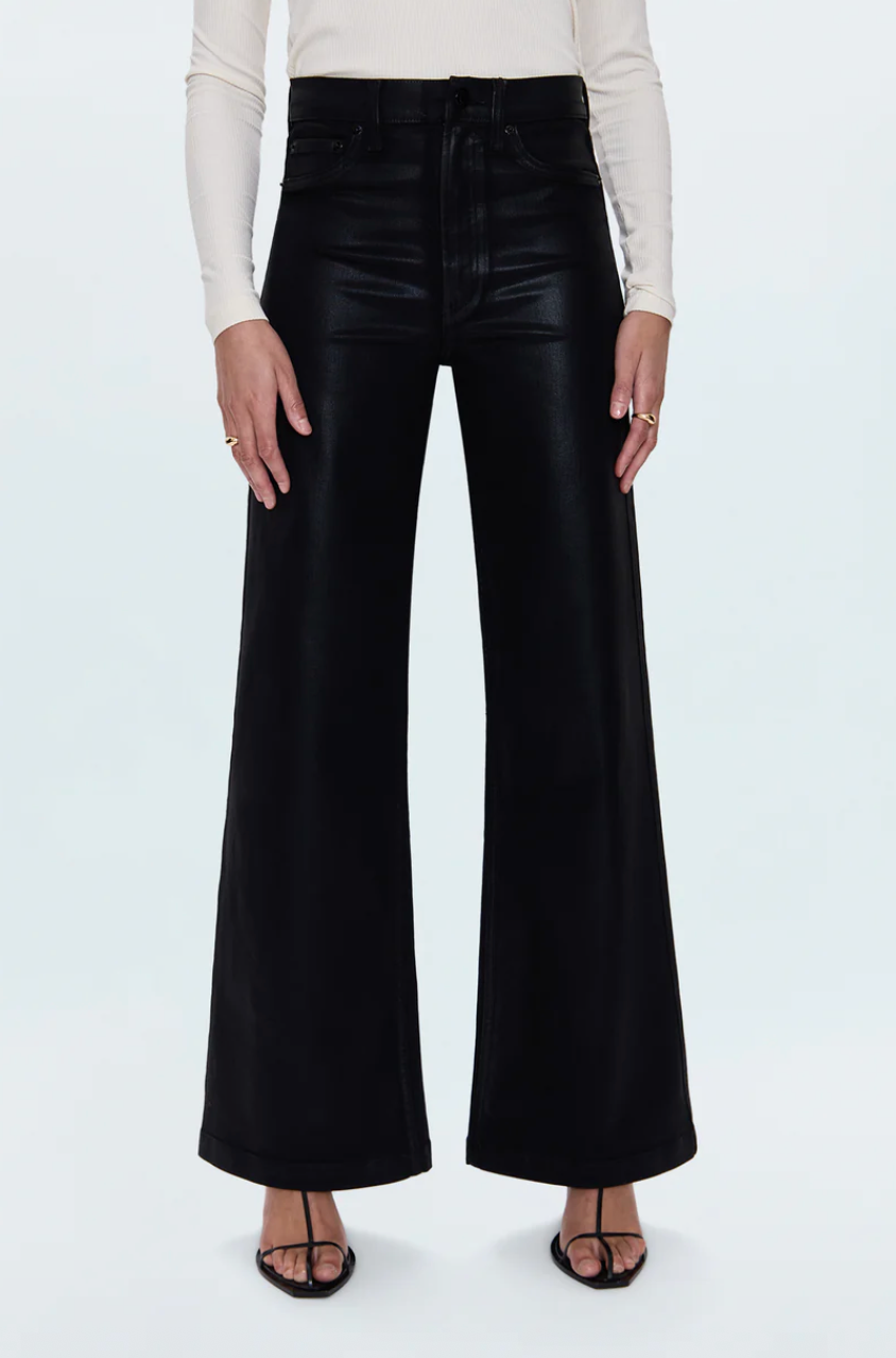 The best-selling wide leg that commands the room. Lana sits at a high rise with an ultra wide leg silhouette and full-length 33" inseam that feels effortlessly dramatic. The ultra wide opening creates maximum impact while the relaxed fit flows beautifully. Crafted from our signature comfort stretch denim in Coated Noir, a rich black finish with luxurious coated texture.