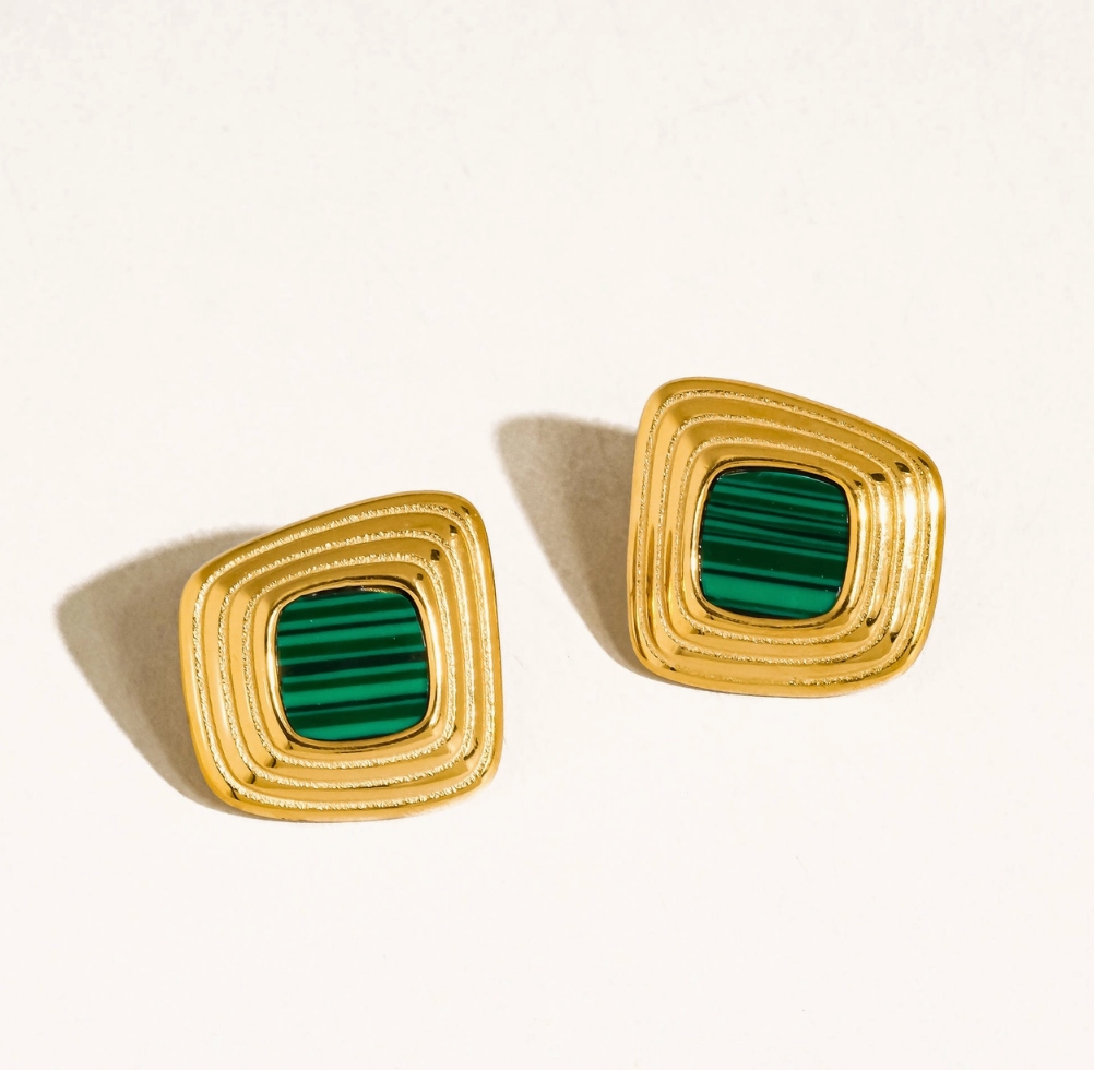 Vintage Square Malachite and Natural Pearl Drop Earrings