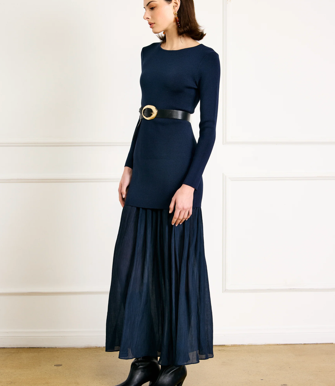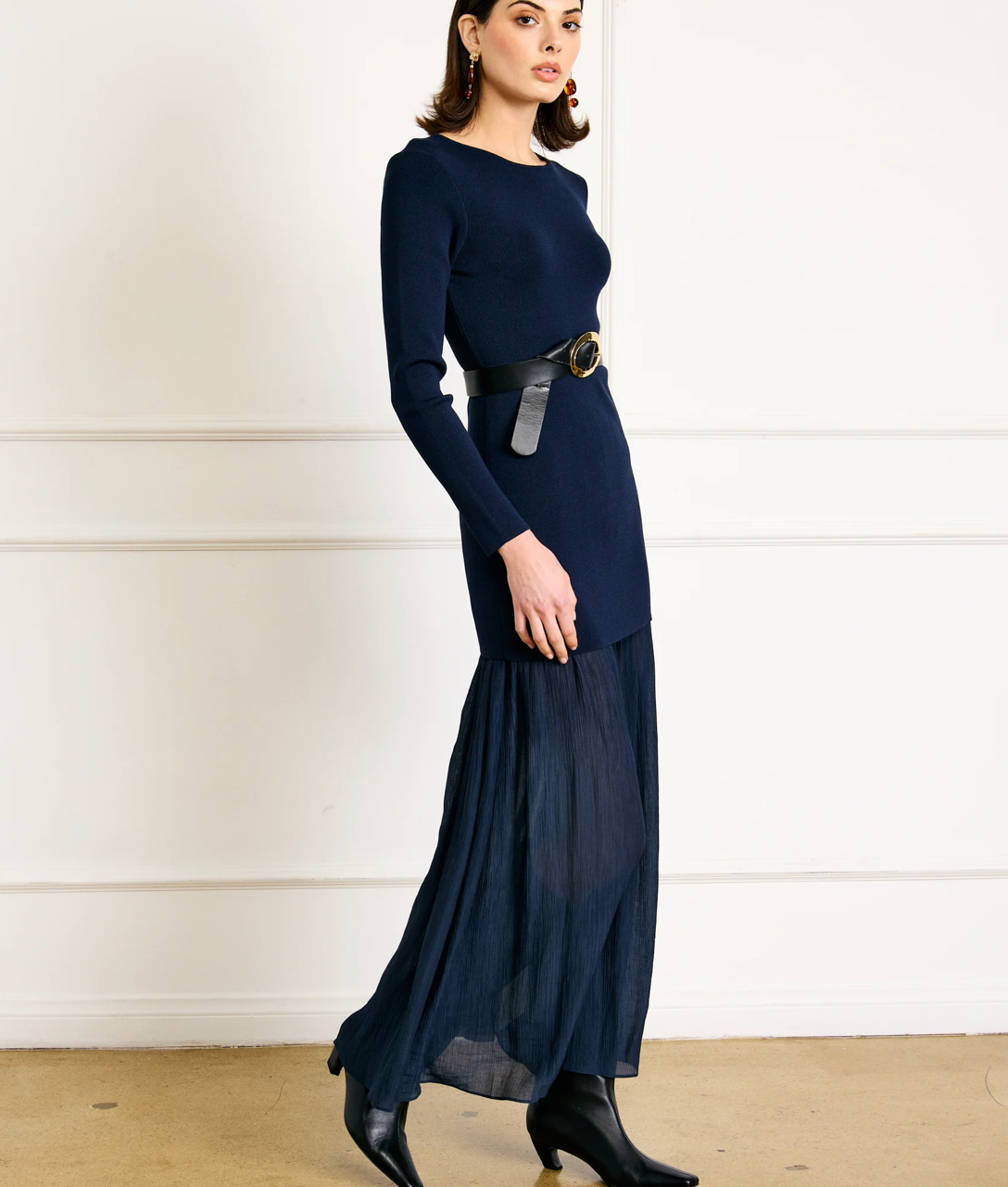 - Intentional semi-sheer skirt in non-stretch textured woven fabric