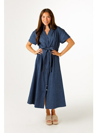 Adjustable Spaghetti Strap Handkerchief Hem Denim Midi Dress