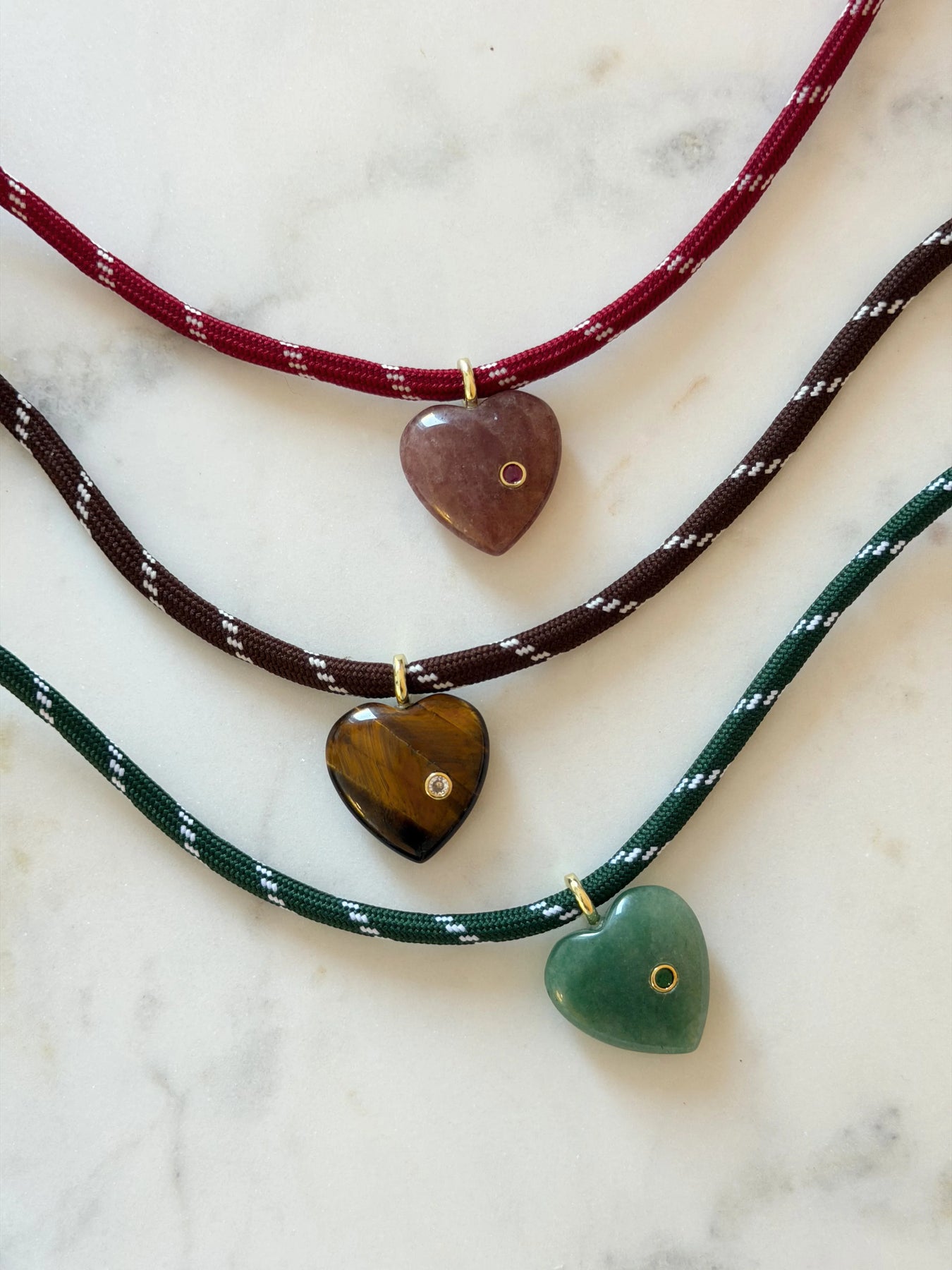 Gemstone Heart on Paracord, 16in with 2in extender