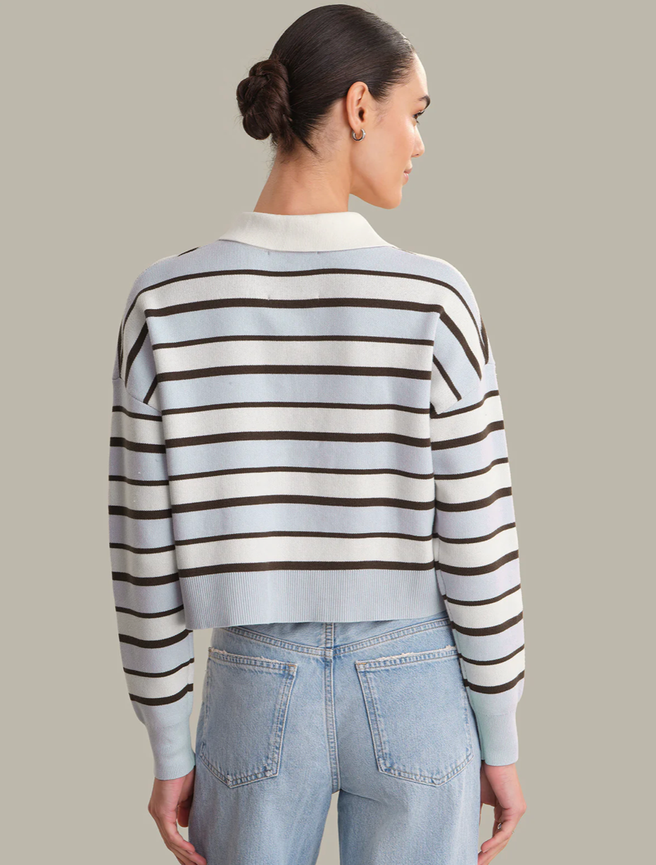 A striped polo pullover that blends comfort and on-trend style for everyday wear. The polo collar adds a sporty twist, while the contrasting stripes bring a subtle retro charm. Style it with dark denim, relaxed trousers, or a midi skirt for a laid-back yet polished look.