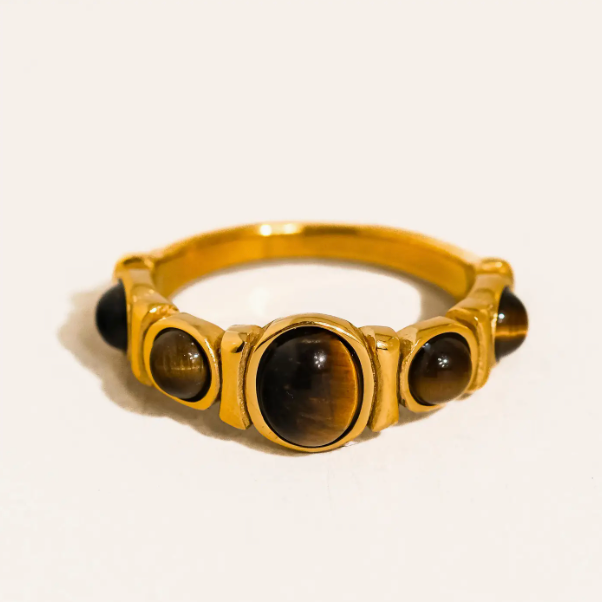 Canso 18K Gold Non-Tarnish Tiger Eye Ring Brown