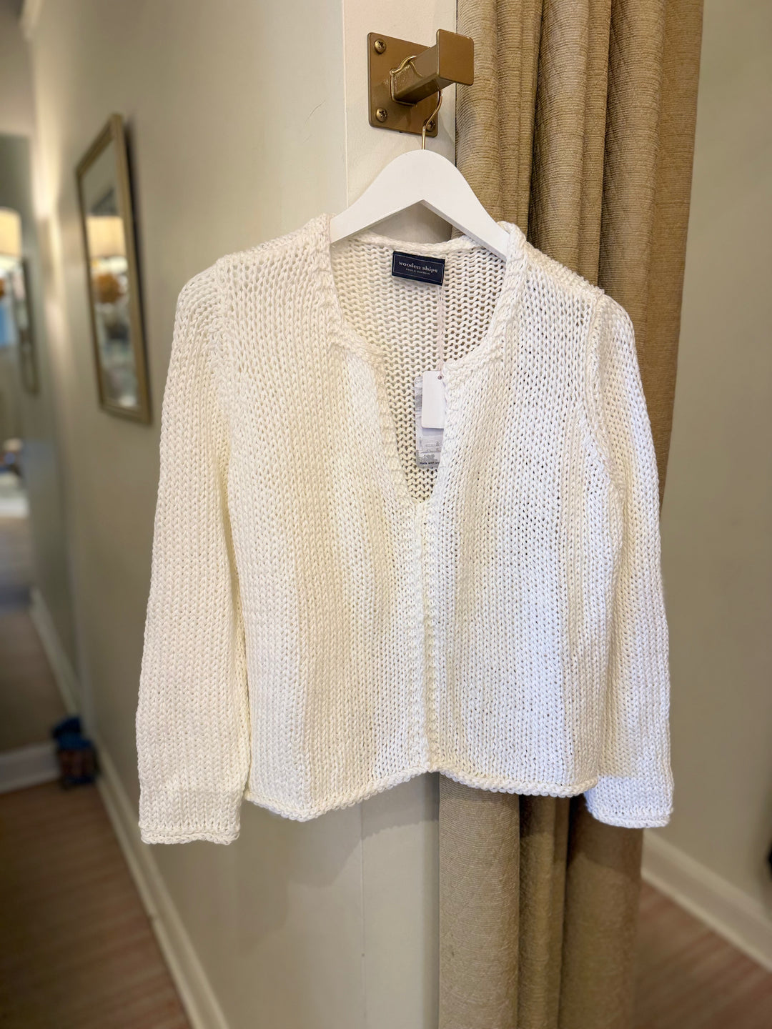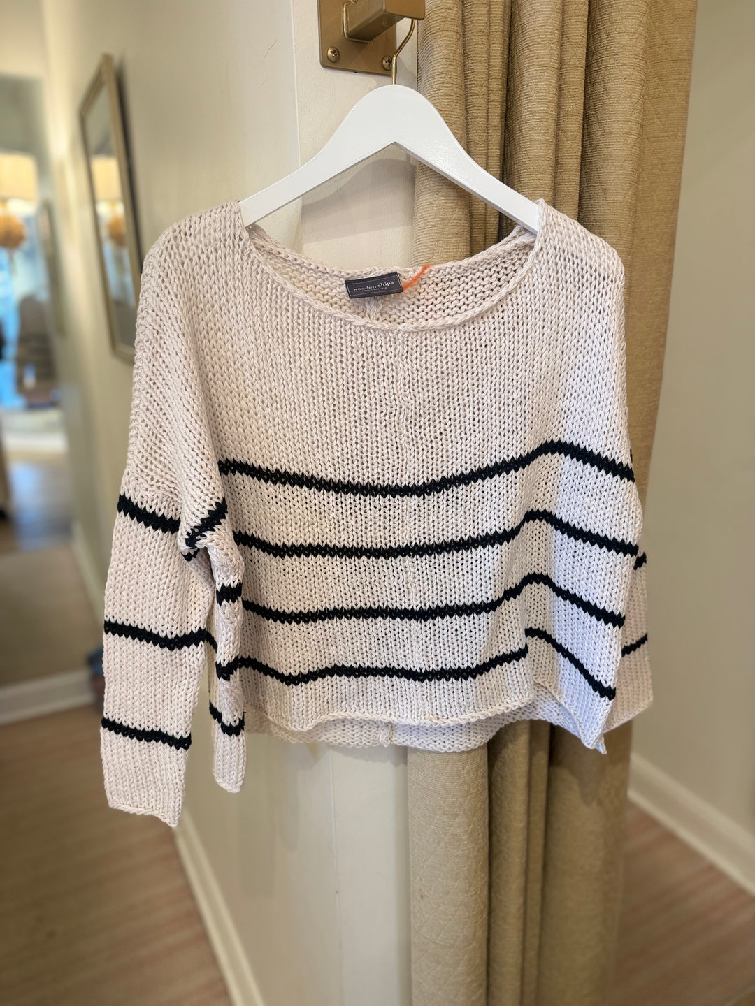 Key West Striped Chunky Crew Cotton Almond Butter/Black