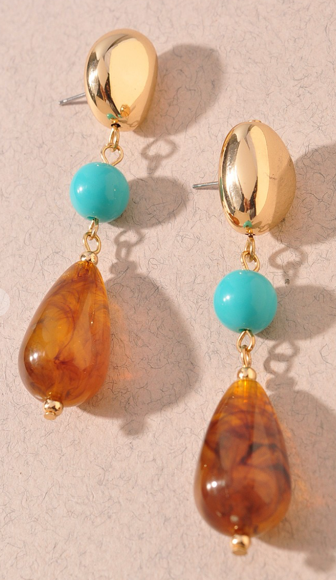 Multi Bead Earrings Light Brown