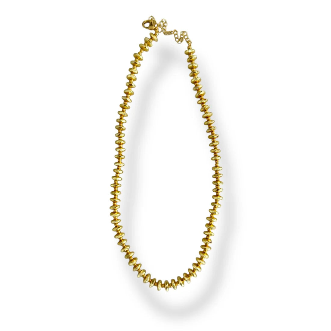 16" beaded necklace with 3" extender. Hematite rounded beads and clasp closure.